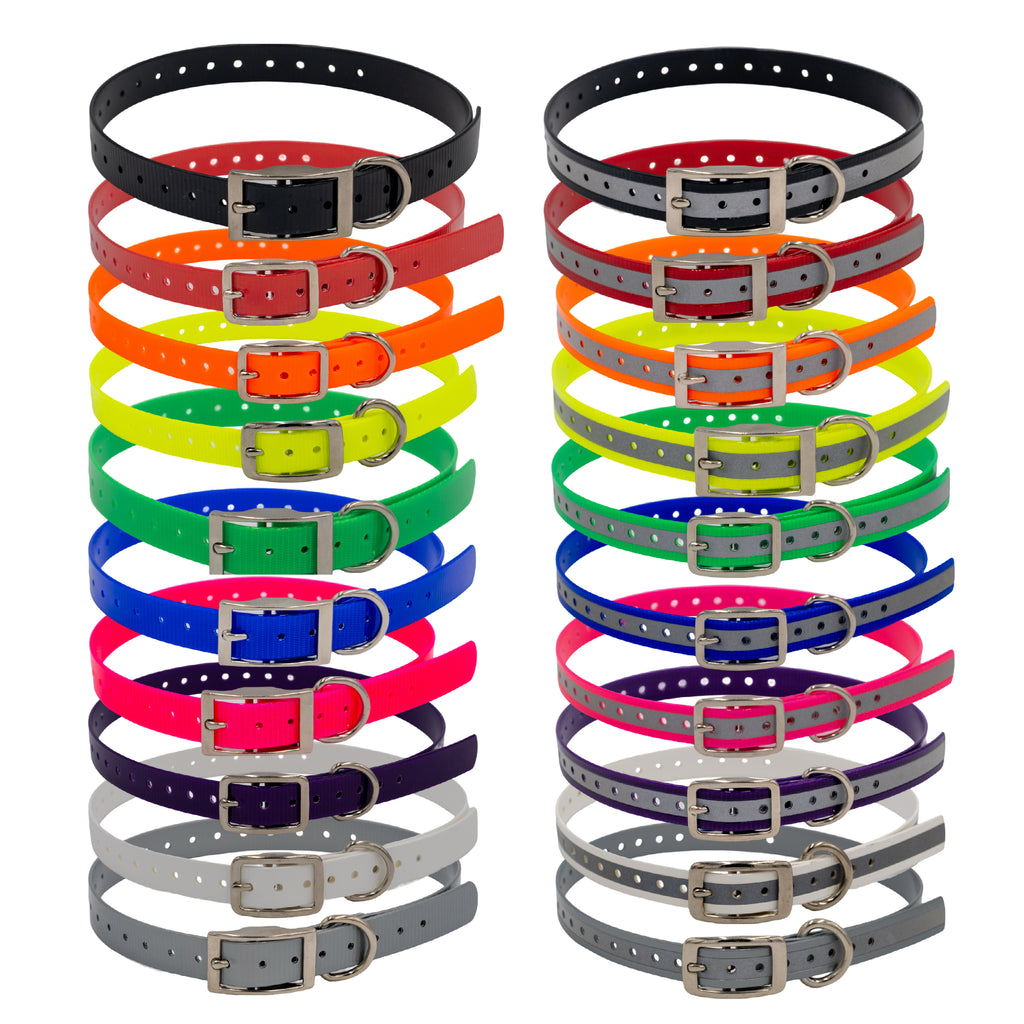 These replacement straps are heavy duty, waterproof, polyurathane-coated nylon. These high quality straps are great replacement straps for any compatible device or just use the collar by itself.Â