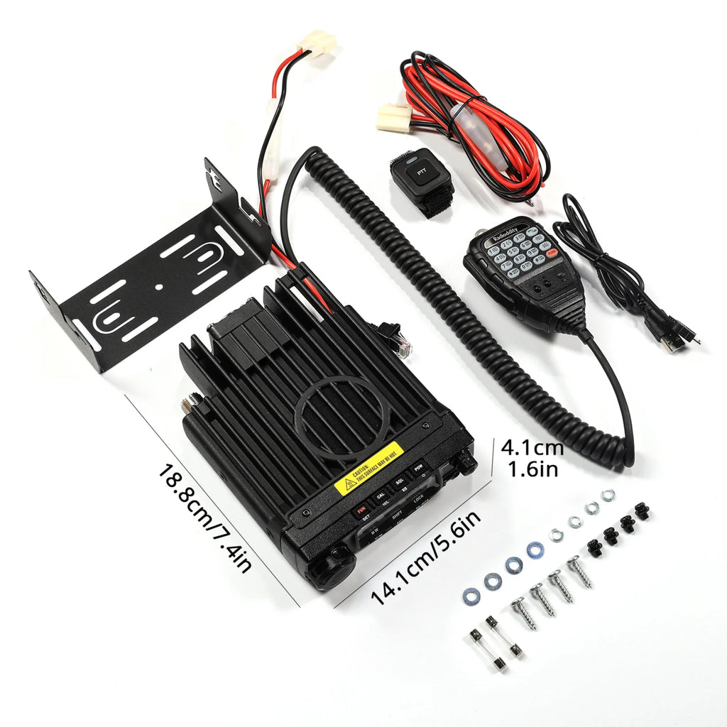 The Radioddity VB70-B is a high-performance ham mobile radio that offers selectable output options of 70W, 25W, and 10W, supporting VHF communication and Airband reception for variable needs With advanced NRC for clear, interference-free communication, it excels even in noisy environments. Bluetooth function allows you to connect a wireless PTT (included) and Bluetooth earpiece for convenient hands-free operation. Additionally, the 32-level background brightness adjustment ensures optimal visibility in any lighting. Whether you're a trucker, pilot, or amateur radio enthusiast, the VB70-B provides powerful, clear communication wherever you are.